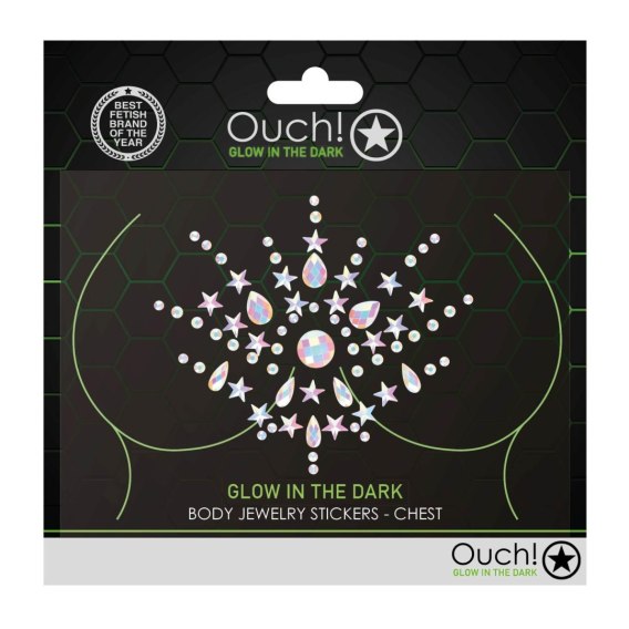 Pochwal się swoim pięknym ciałem, dodając odrobinę blasku i ukradnij wieczór! Ta błyszcząca naklejka świeci w ciemności i jest przeznaczona do noszenia na klatce piersiowej.
