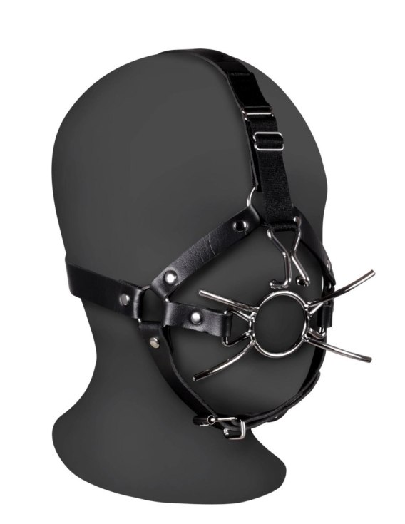Head Harness with Spider Gag and Nose Hooks - Black