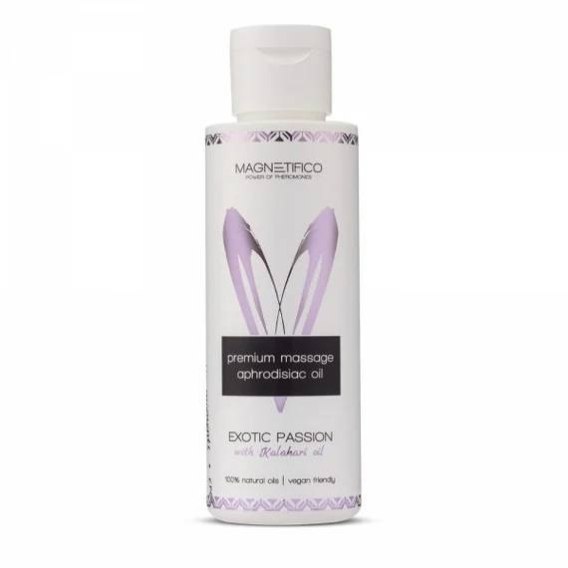 Magnetifico Aphrodisiac Massage Oil Exotic Passion 100 ml to zmysłowy olejek stworzony z myślą o rozpaleniu zmysłów i stworzeniu wyjątkowej atmosfery intymności. Egzotyczna kompozycja zapachowa działa stymulująco, a lekka, aksamitna konsystencja doskonale rozprowadza się po ciele, oferując długotrwały poślizg bez uczucia tłustości. Ten olejek został zaprojektowany, by masaż stał się czymś znacznie więcej niż tylko relaksem - to zaproszenie do przyjemności, która rozbudza ciało i wyobraźnię.
